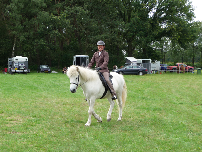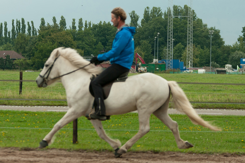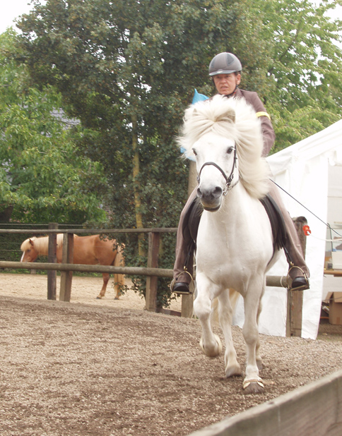Losrijden, showtime, in het kamp, met Wereldkampioen Siguršur Marinusson (Siggi Mar).