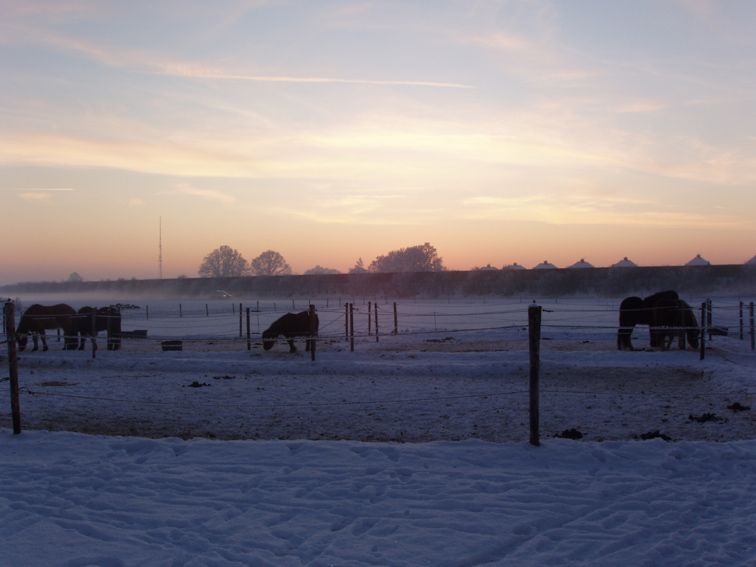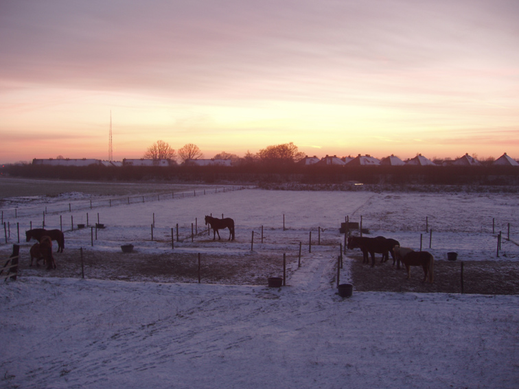 Niet alleen paarden voelen zich op hun gemak in onze stal. Winter geeft altijd mooie plaatjes.